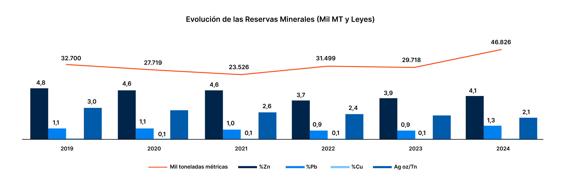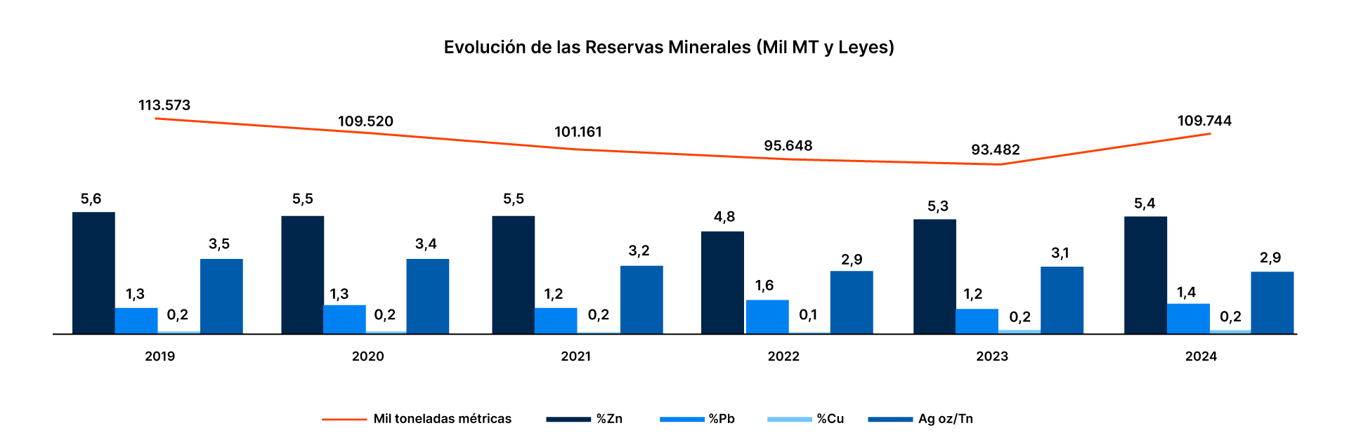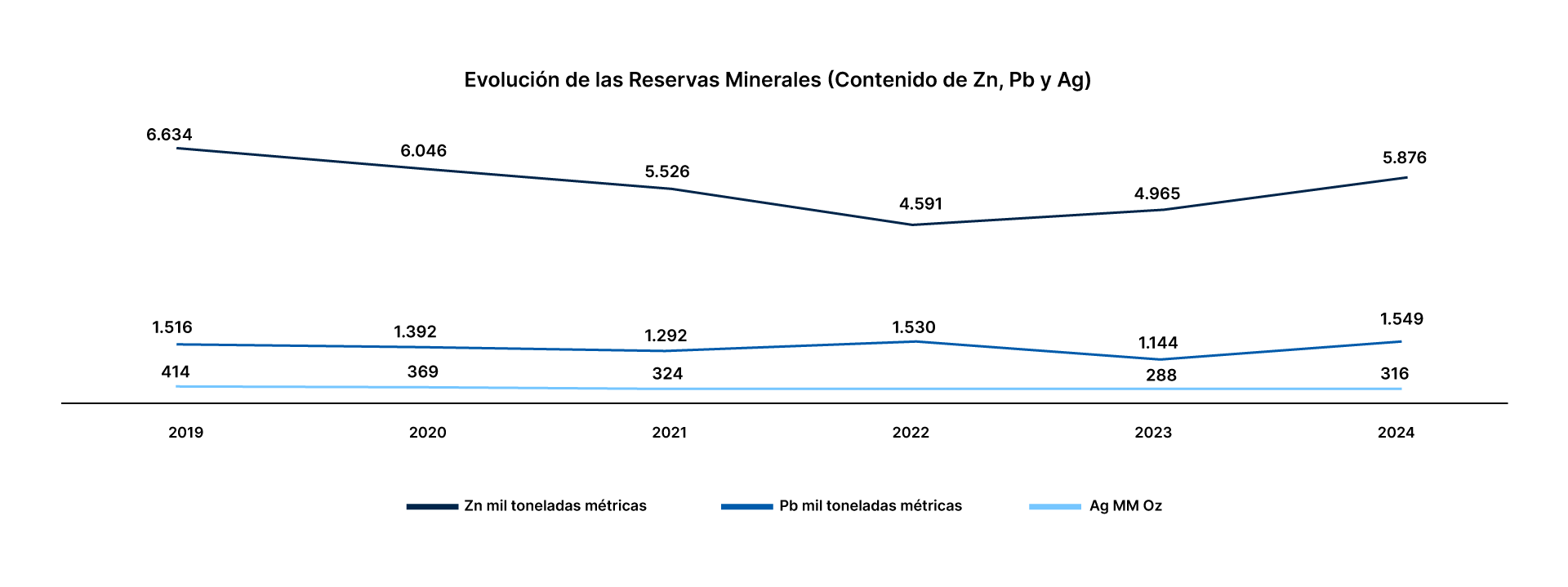 Evolución total de los recursos minerales: Volcan y subsidiarias
